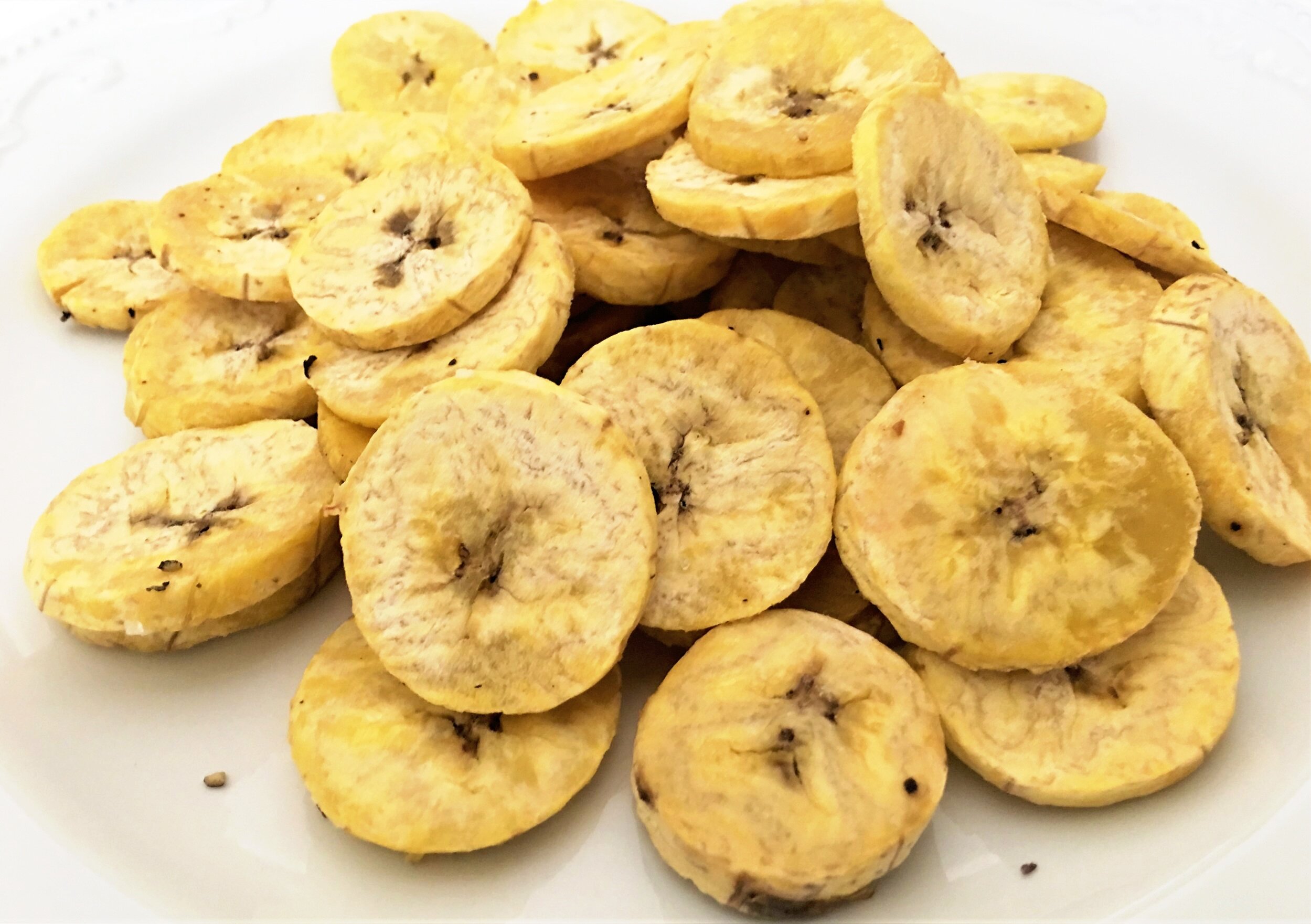 * You can also make these Plantain Chips with an Air Fryer. That is actually my preferred way to make them because I can make them oil free! You just put them in the air fryer on the highest temp and shake the basket every 5 minutes until done. 1 Plantain usually takes about 10-15 minutes depending on the size of the air fryer.