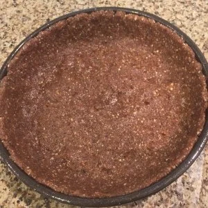 6. Spread the crust out over a non-stick 8 inch pie pan. Take your time with this and gently press it out and knead up the sides.